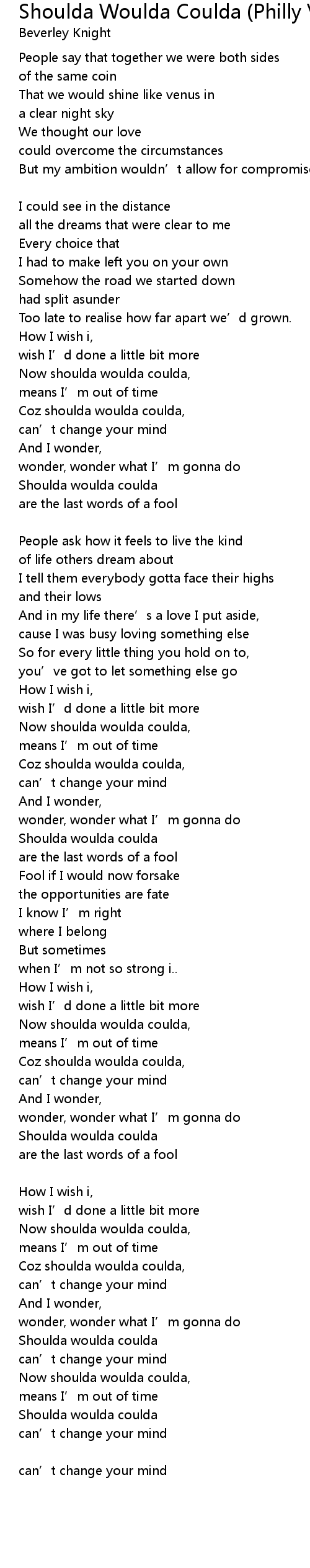 | Coz shoulda woulda coulda, | |