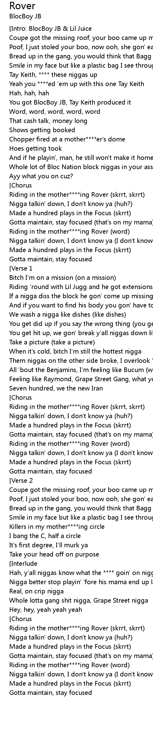 Riding in the mother****ing Rover (word) |