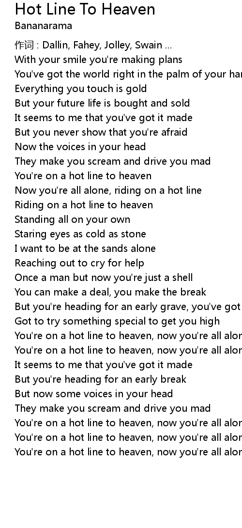 | You' re on a hot line to heaven, now you' re all alone | |