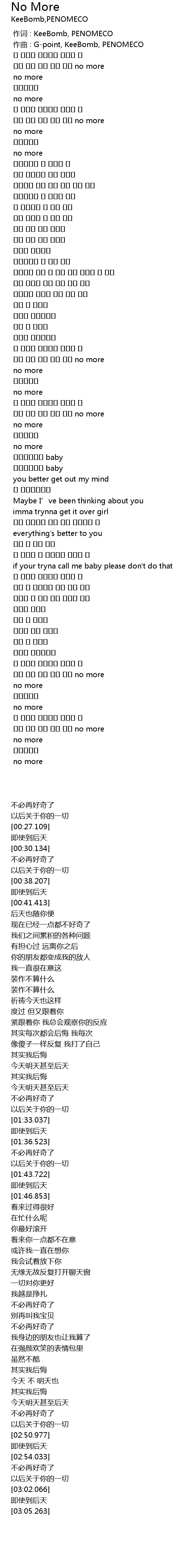 | [00:00.000] | 作词 : KeeBomb, PENOMECO |