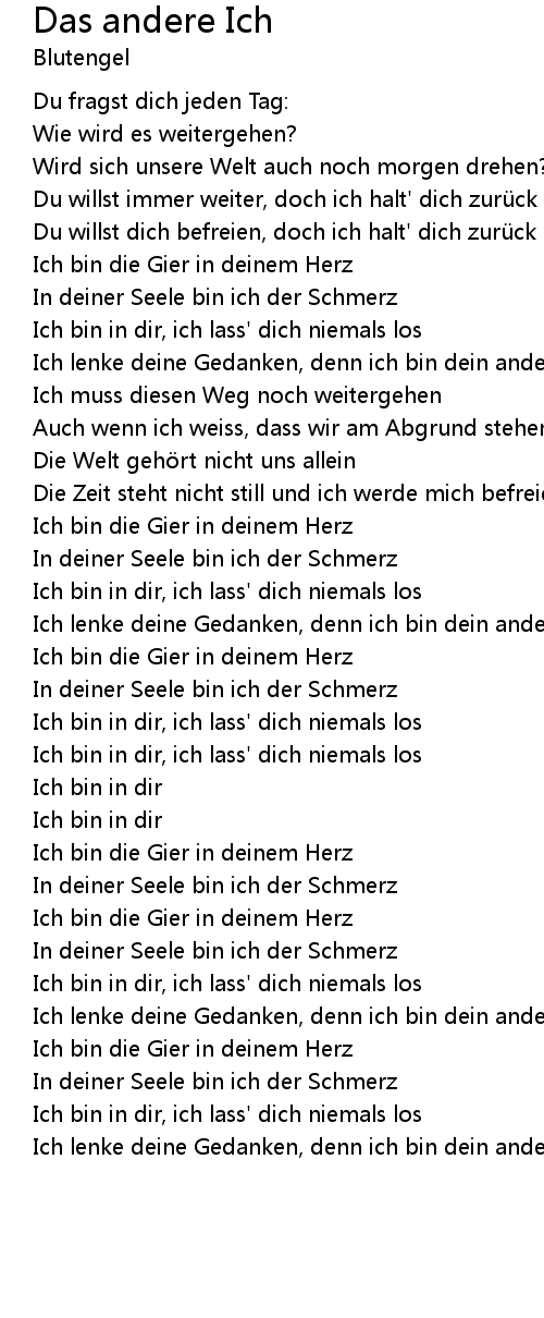 | Ich lenke deine Gedanken, denn ich bin dein anderes Ich | |