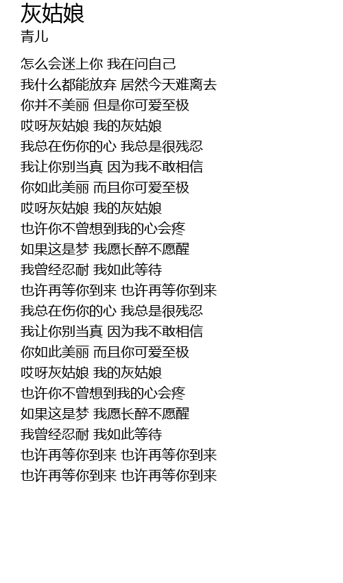 | [00:39.250] | 哎呀灰姑娘 我的灰姑娘 |
