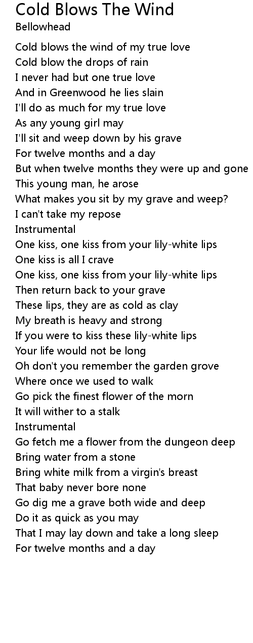 Cold blows the wind of my true love |