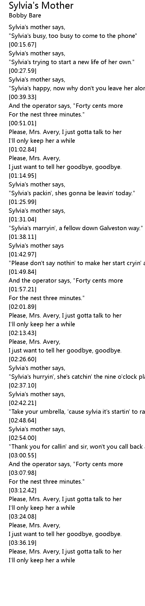 "Take your umbrella, 'cause sylvia it's startin' to rain." |