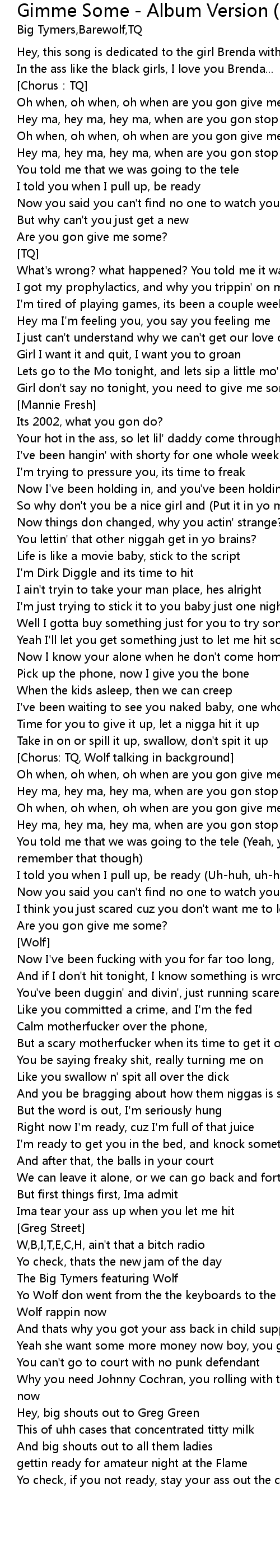 | Oh when, oh when, oh when are you gon give me some? | |