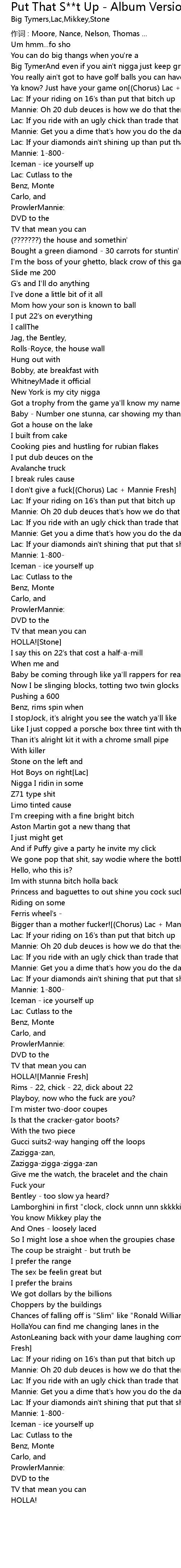 | AstonLeaning back with your dame laughing come on haha Chorus Lac Mannie Fresh | |