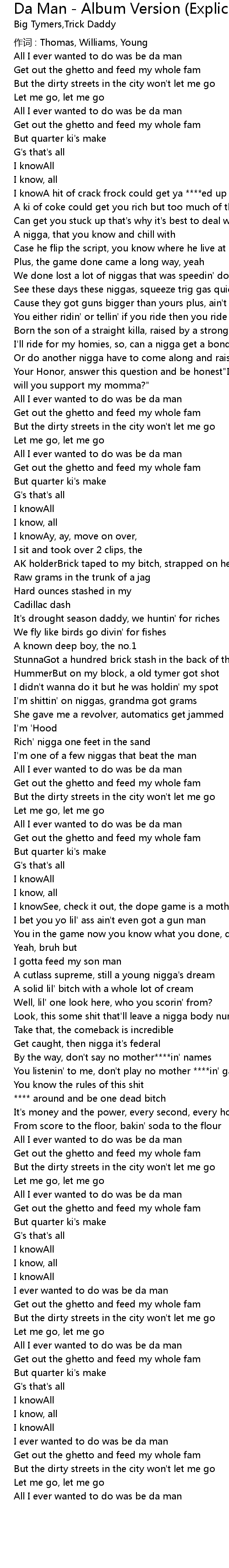 | Cause they got guns bigger than yours plus, ain' t not more coppin' out | |