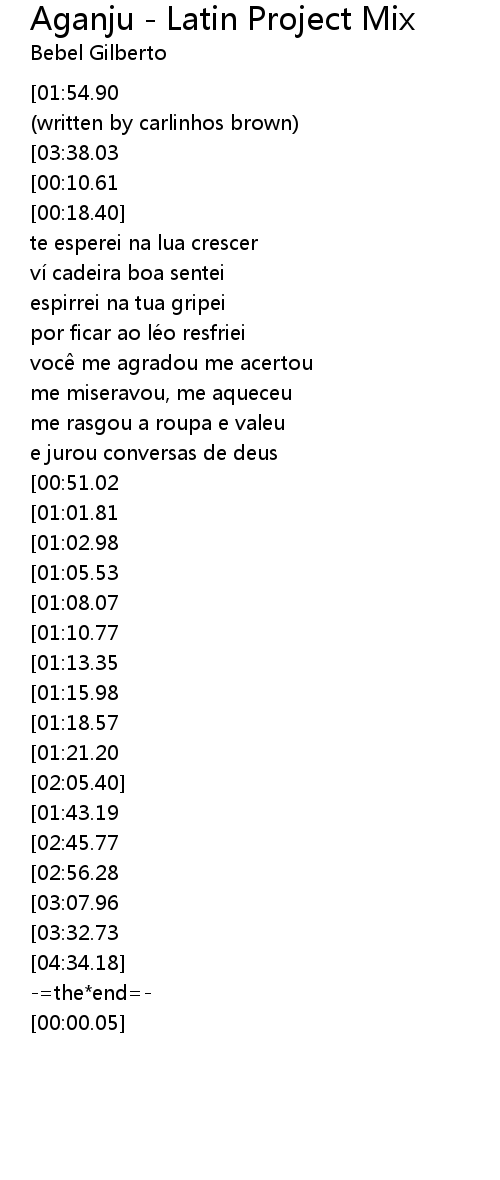 | [03:39.30][01:54.90][00:00.00] | bebel gilberto aganju |