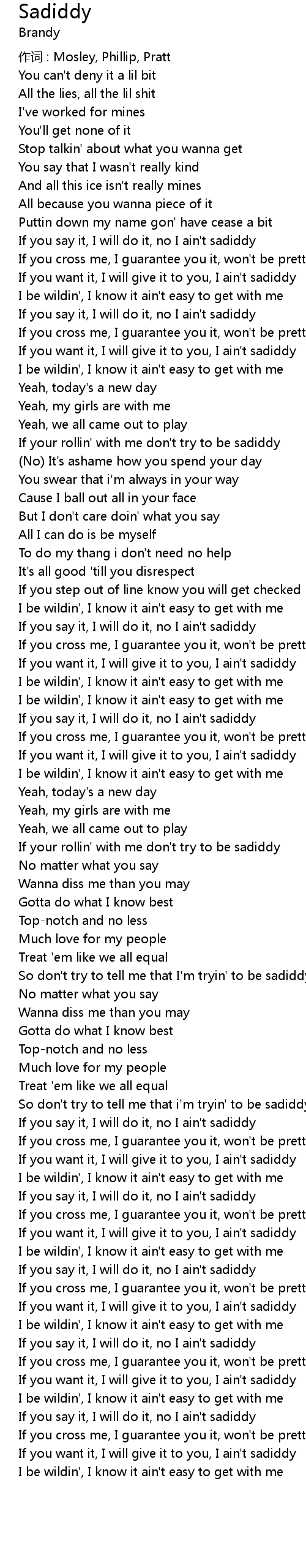 | If you want it, I will give it to you, I ain't sadiddy | |