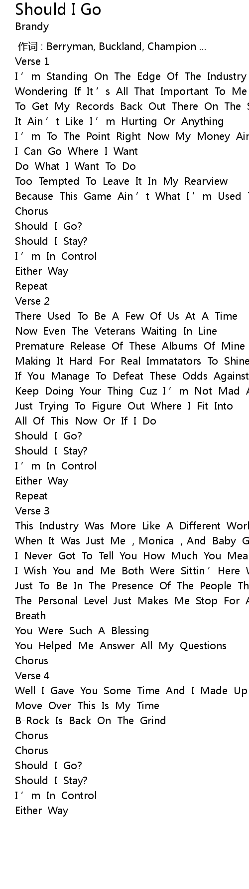 | [00:51.99] | Should I Go? |