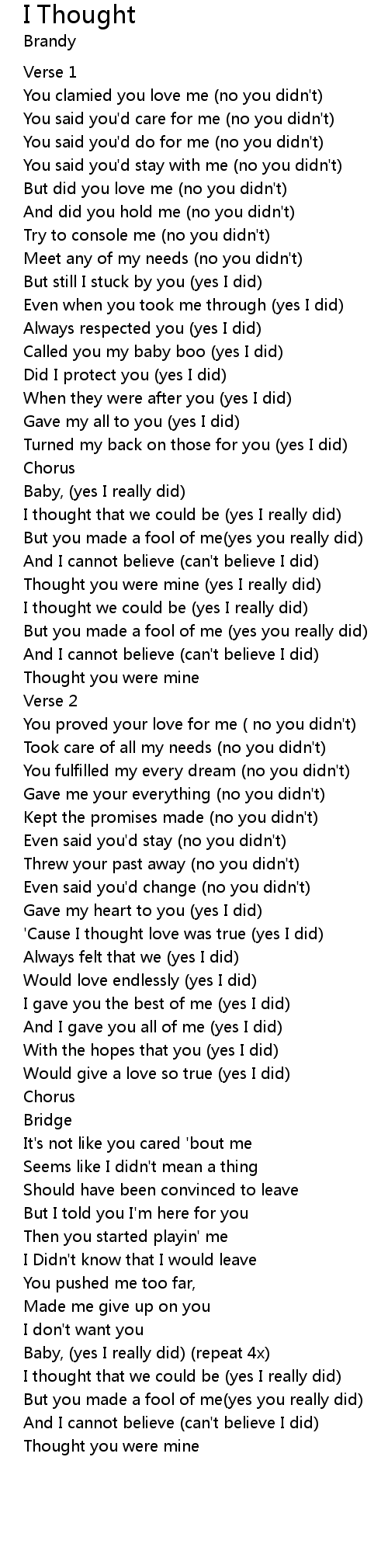 | Thought you were mine (yes I really did) | |