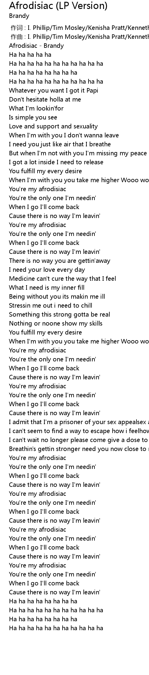 | [00:00.100] | Afrodisiac - Brandy |
