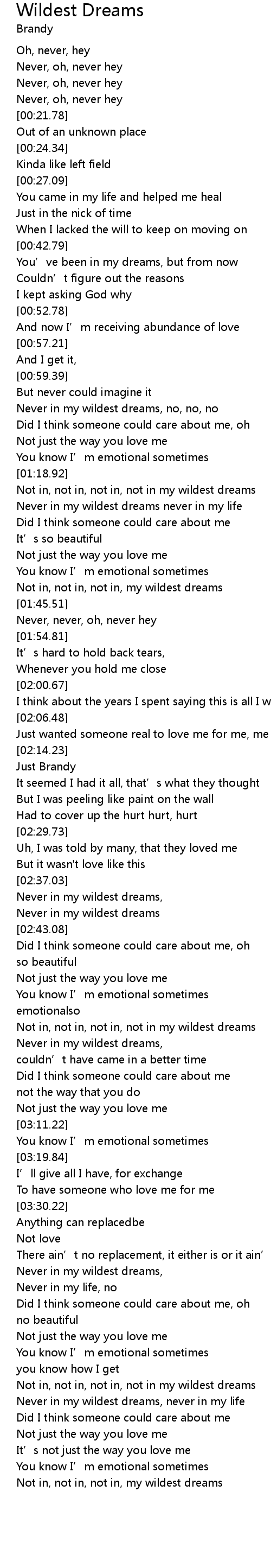 | [03:56.19] | Not in, not in, not in, not in my wildest dreams |