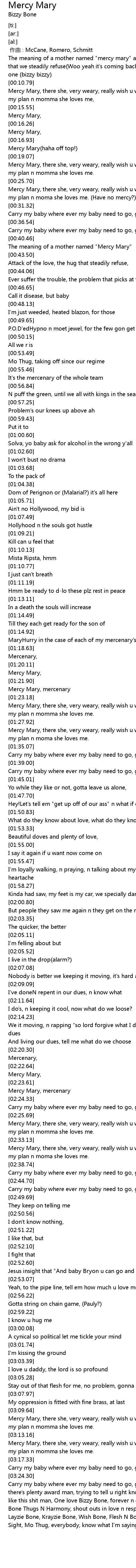 | [00:26.57] | Mercy Mary, there she, very weary, really wish u would tell me all of my plan n moma she loves me. Have no mercy? |