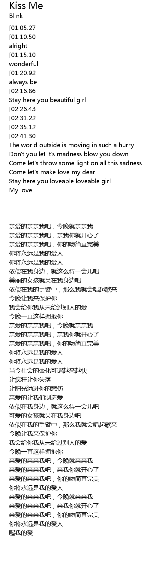 | [00:16.70][01:10.50][03:08.86][02:49.25] | Kiss me darling kiss and you'll be alright |