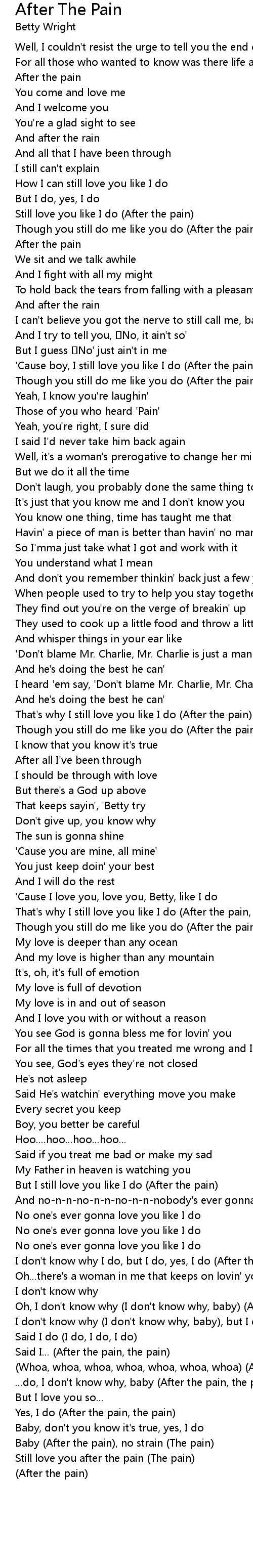| That's why I still love you like I do (After the pain, the pain) | |
