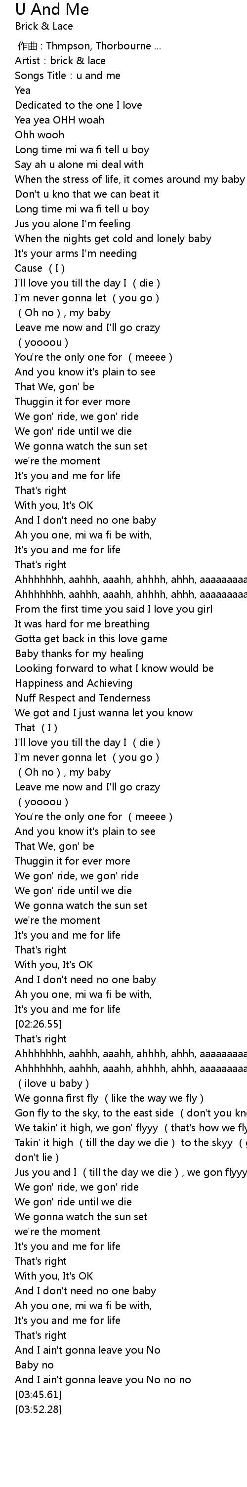 | [00:01.55] | Songs Title:u and me |
