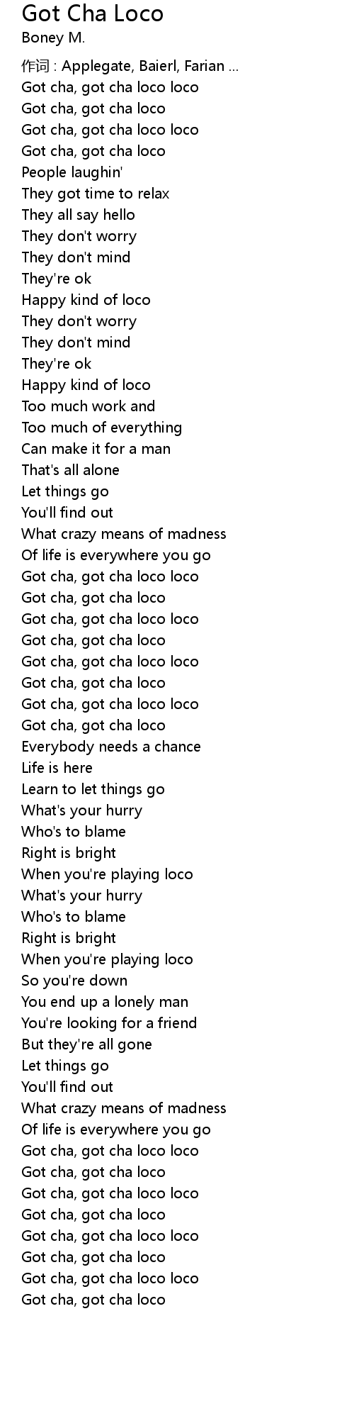 | 作词 : Applegate, Baierl, Farian ... | |
