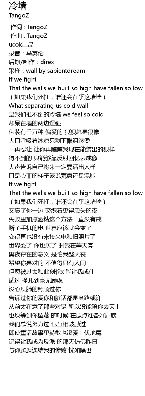 | [00:00.000] | 作词 : TangoZ |