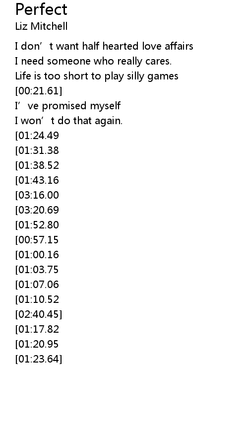 | [02:47.58][01:24.49][00:28.46] | It' s got to be perfect |