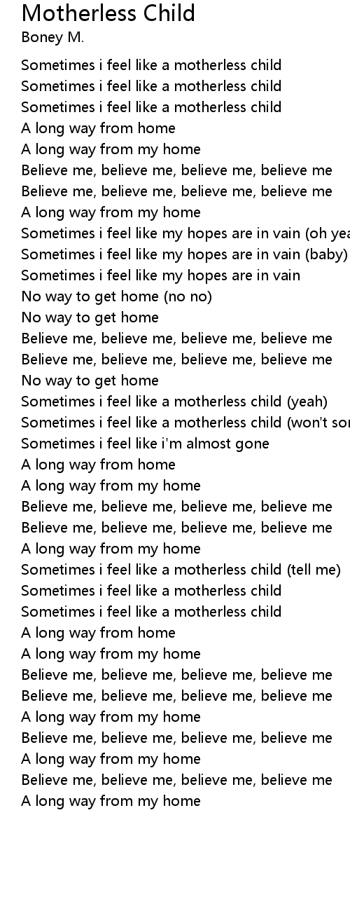 Sometimes i feel like a motherless child (won't someone help me now) |
