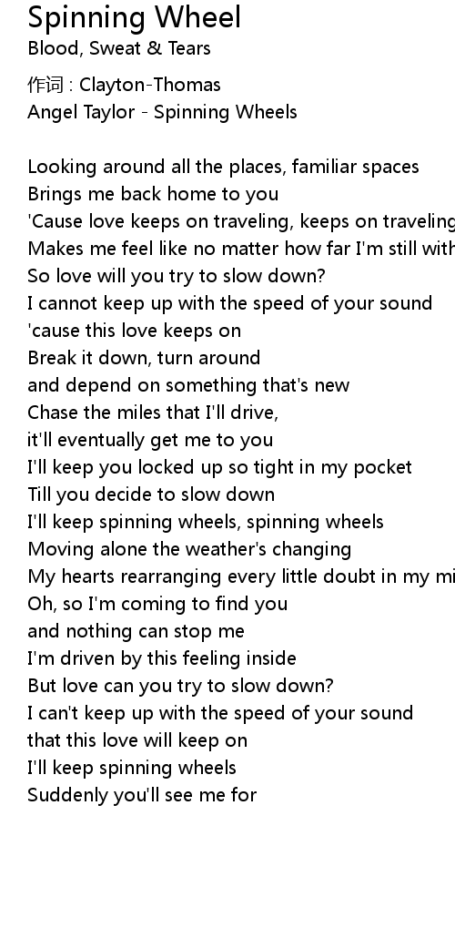 | I' ll keep spinning wheels, spinning wheels | |