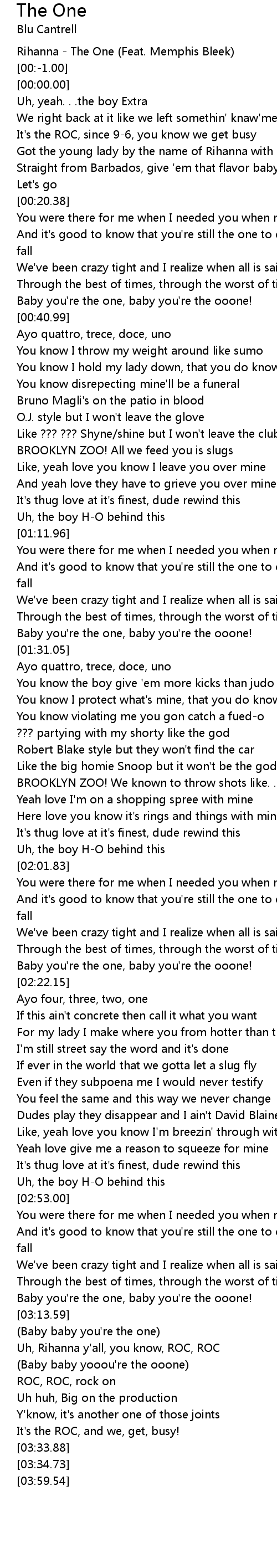 Rihanna - The One (Feat. Memphis Bleek) |