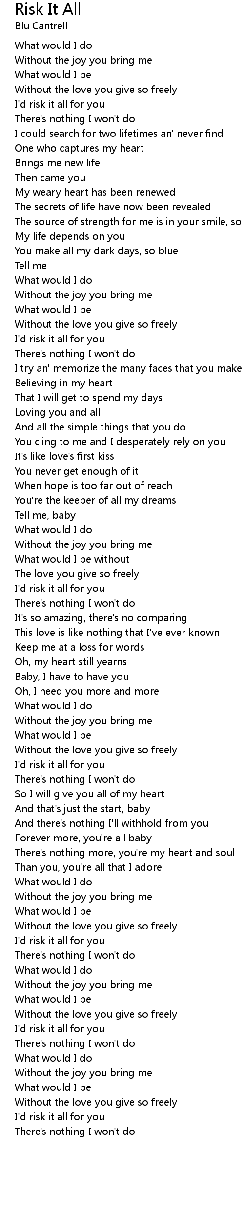 I'd risk it all for you |
