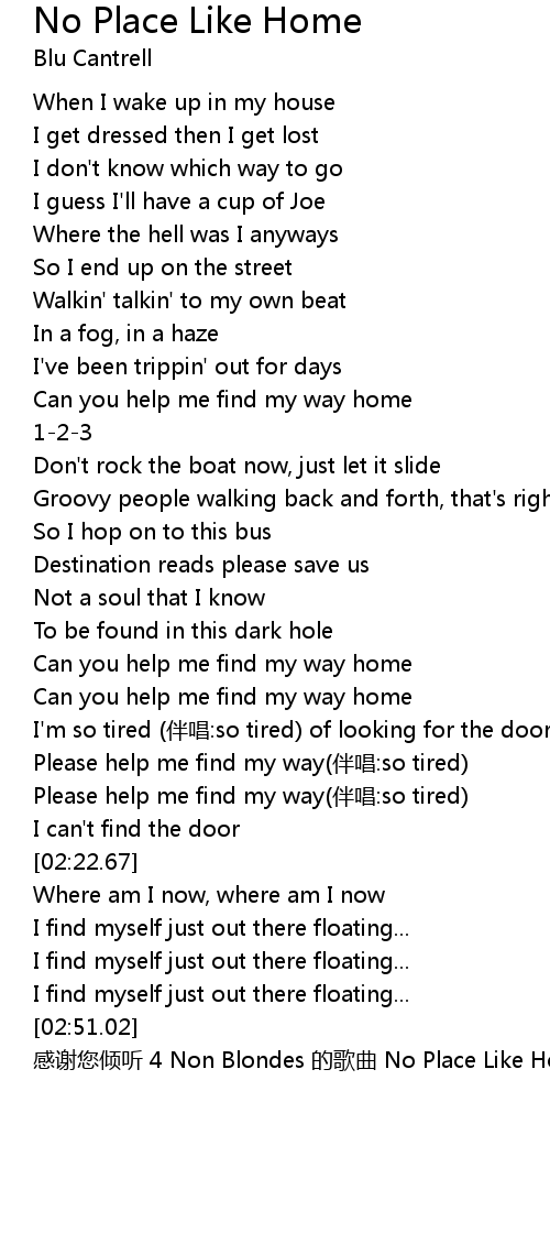 | [02:51.89] | 感谢您倾听 4 Non Blondes 的歌曲 No Place Like Home |