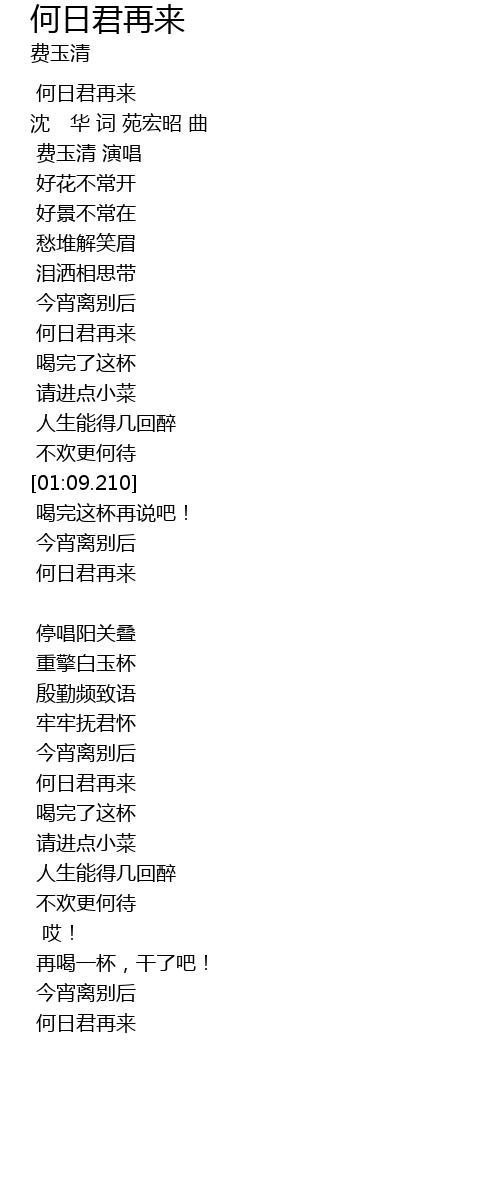 | [00:16.520] | fèi yù qīng yǎn chàng |