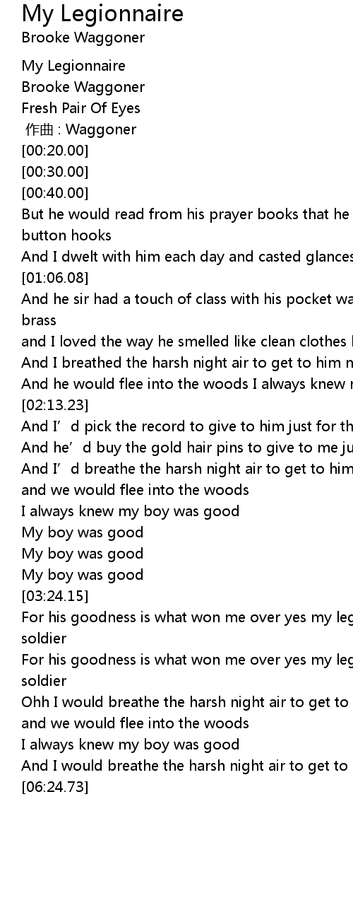 | [02:53.88] | And I' d breathe the harsh night air to get to him my legionnaire |