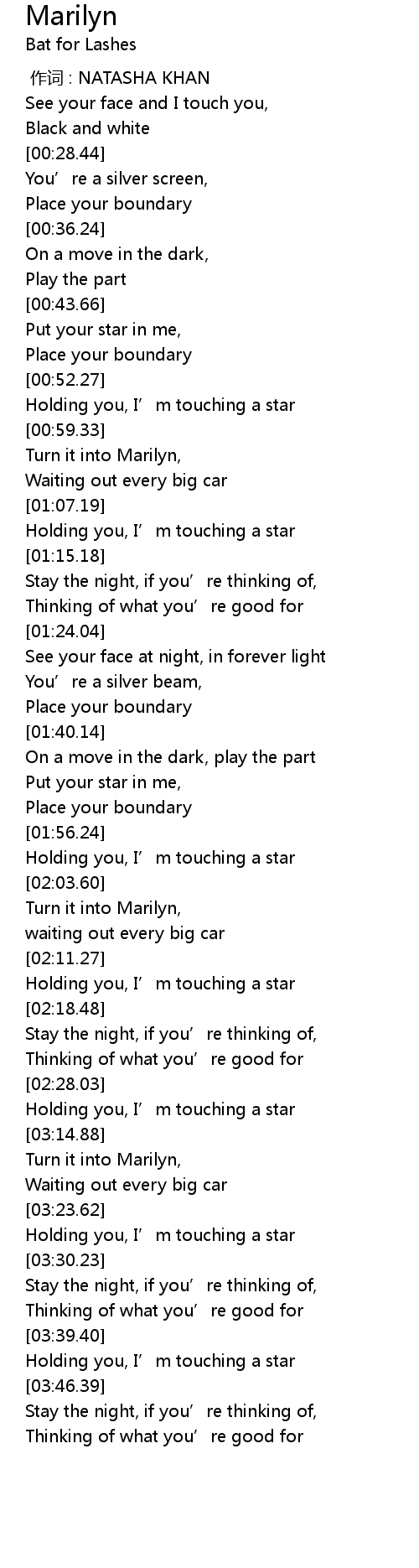 | [01:02.20] | Turn it into Marilyn, |