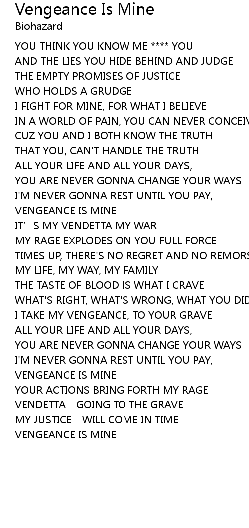 | Song | Vengeance Is Mine |