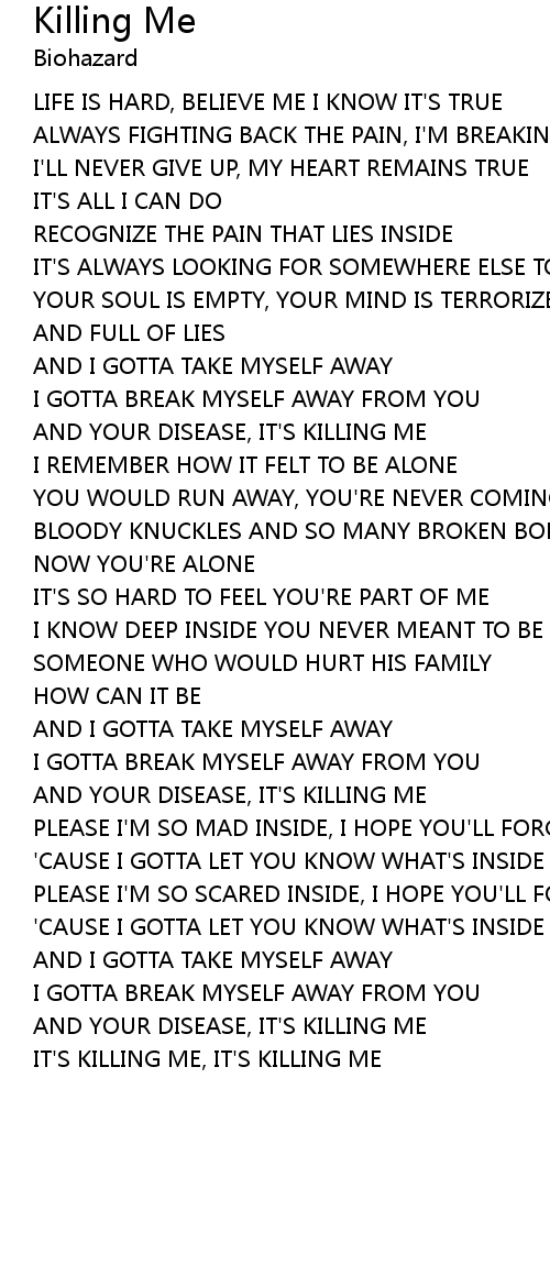 AND YOUR DISEASE, IT'S KILLING ME |