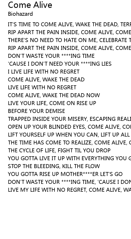 LIVE MY LIFE WITH NO REGRET, COME ALIVE, WAKE THE DEAD NOW |