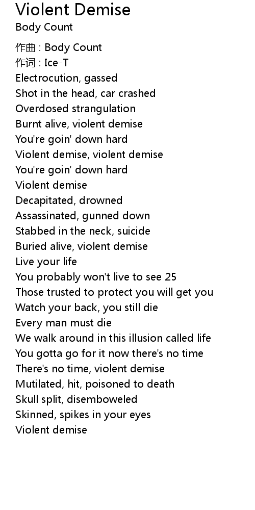 | Violent demise, violent demise | |
