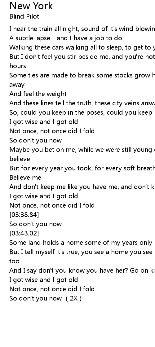 | [00:38.55] | I hear the train all night, sound of it's wind blowing through |