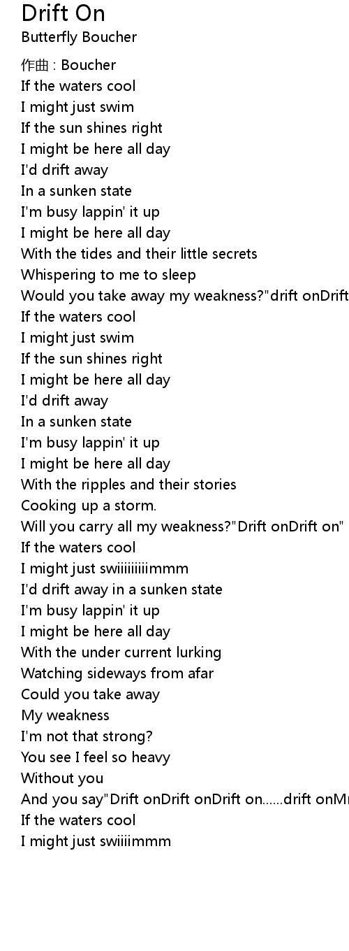 | And you say"Drift onDrift onDrift on......drift onMmmmStay strongDrift on" | |