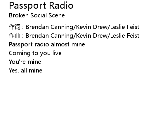 | 作词 : Brendan Canning/Kevin Drew/Leslie Feist | |