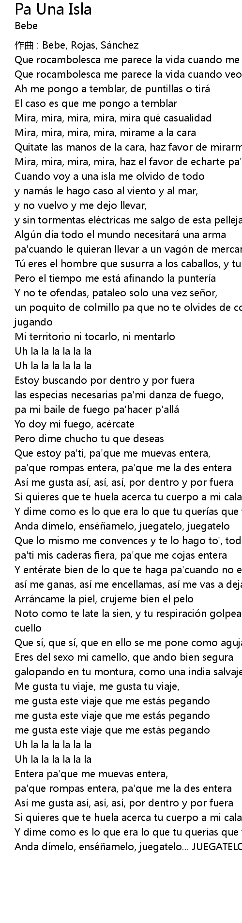 | zuò qǔ : Bebe, Rojas, Sá nchez | |