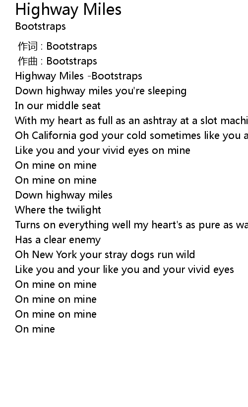 | [00:00.170] | Highway Miles -Bootstraps |