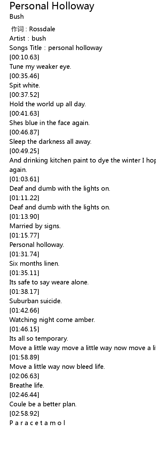 | [00:08.19] | Songs Title:personal holloway |