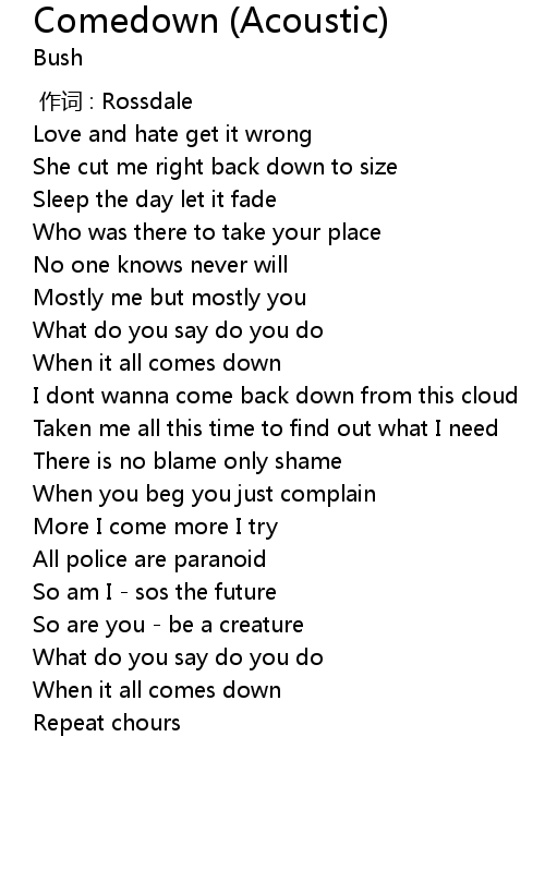 | Song | Comedown (Acoustic) |