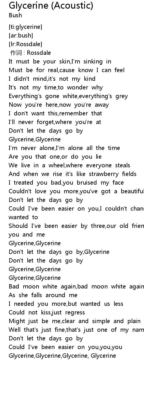| [03:41.617] | Glycerine,Glycerine,Glycerine, Glycerine |