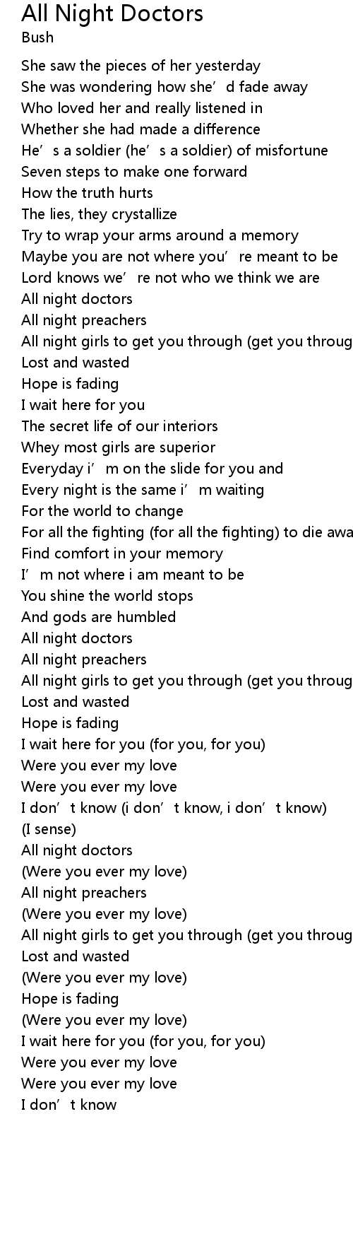 | Song | All Night Doctors |