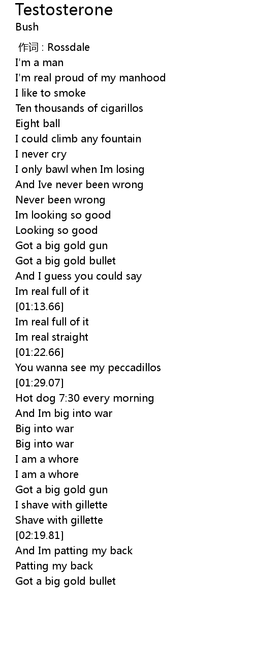 | [00:21.13] | I'm real proud of my manhood |