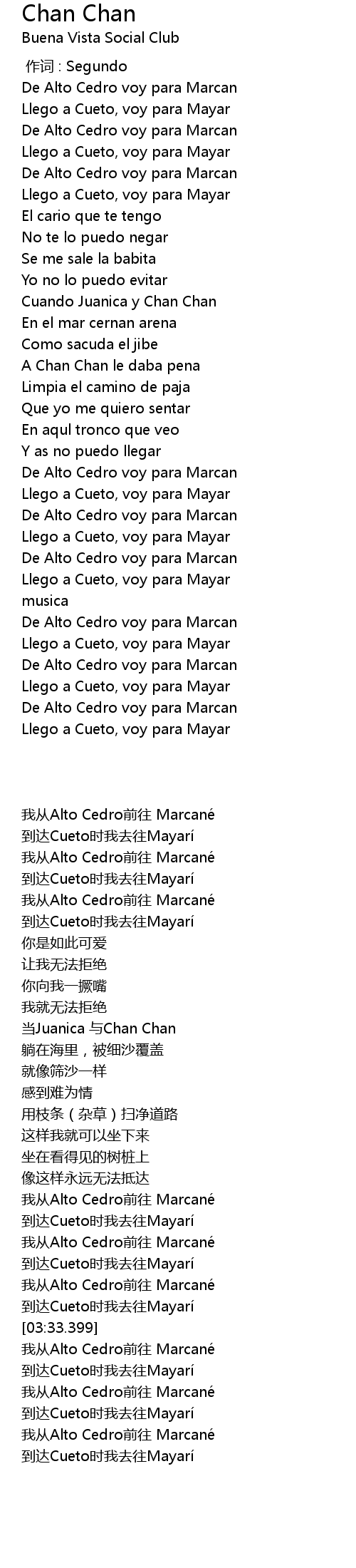 | [01:24.400] | Cuando Juanica y Chan Chan |