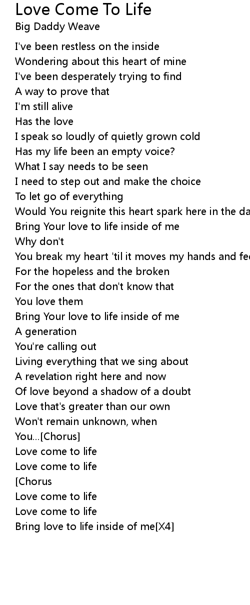 Bring Your love to life inside of me |