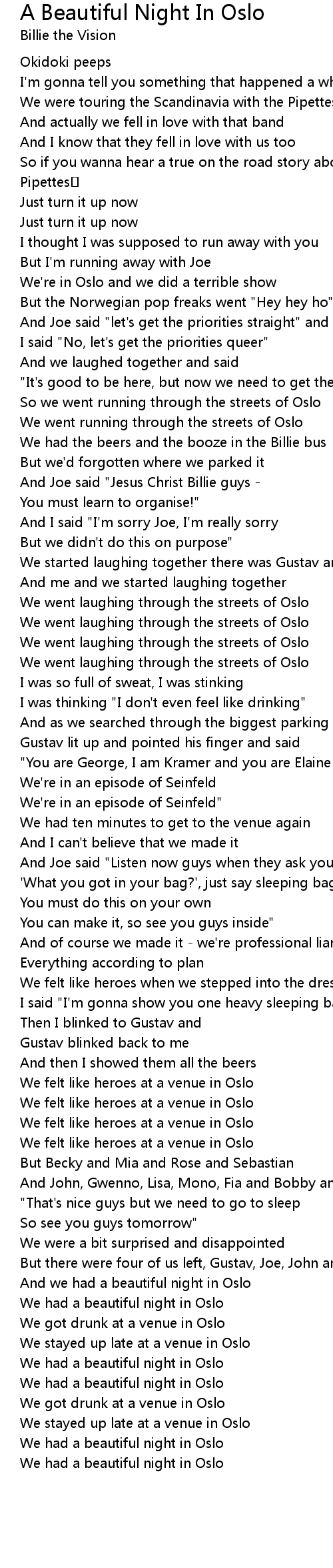| We went laughing through the streets of Oslo | |