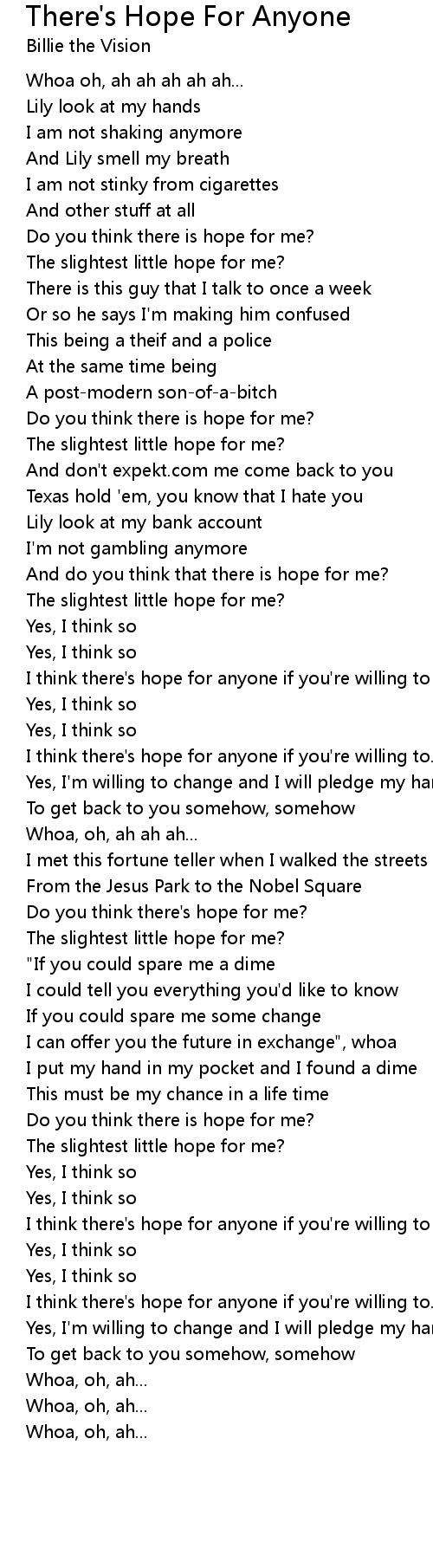 And do you think that there is hope for me? |